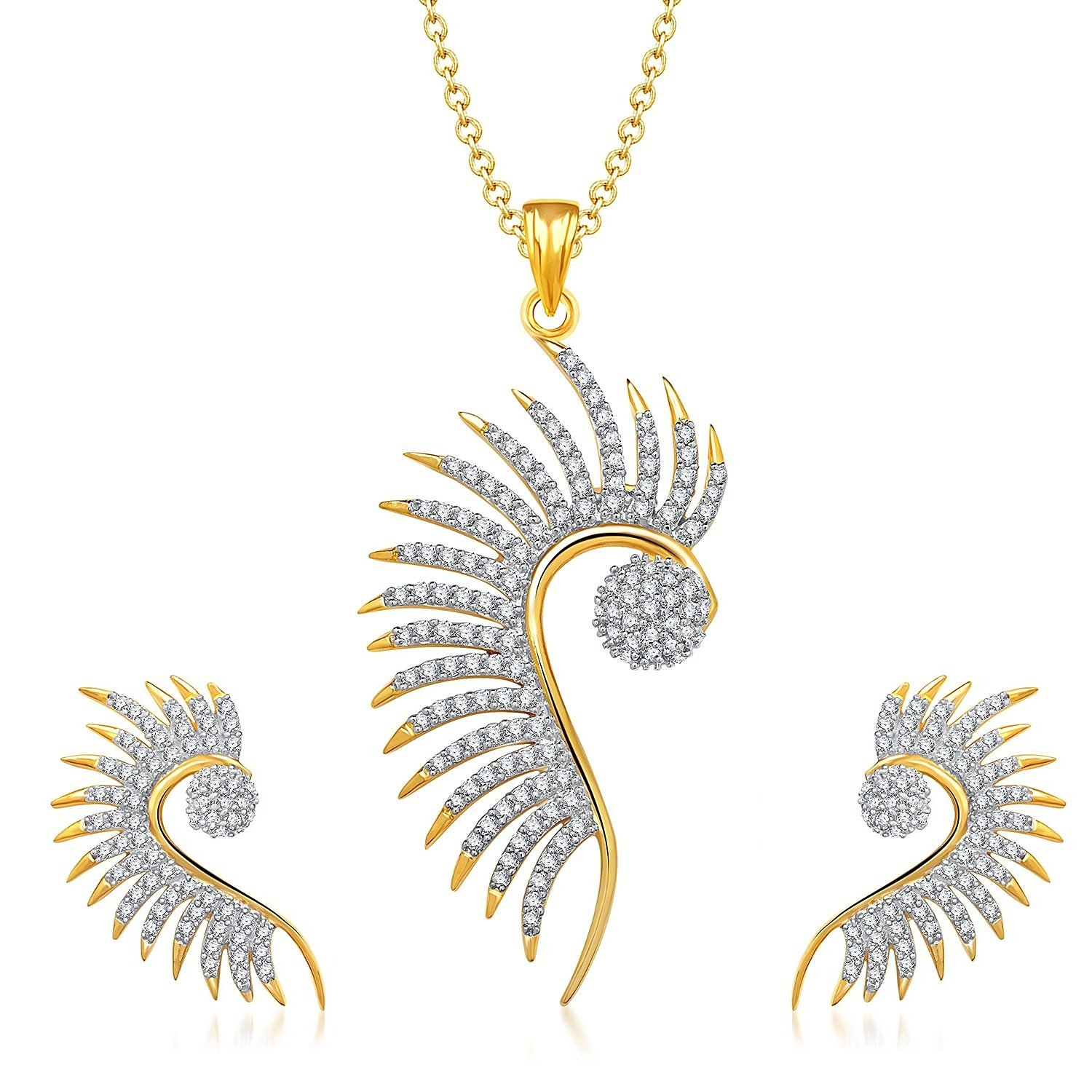 M CREATION Designer Cz Peacock Pendant Set Chain for Women at FreeKaaMaal.com Free Download